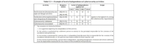 The recommended independence of cybersecurity engineering in the standard: